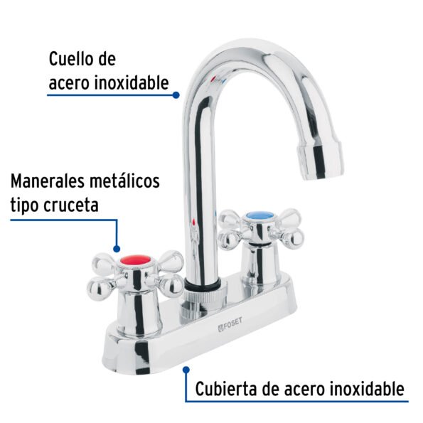 Mezcladora 4″ para Lavabo Cuello bar Manerales Cruceta