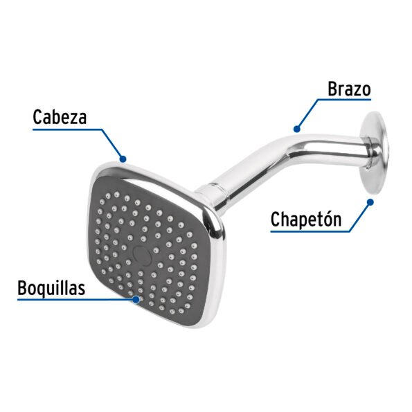 Regadera Cuadrada 3-3/4″ Brazo y Chapetón de Acero